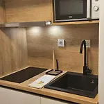 الضيوف مدعوون لإعداد طعامهم في منطقة المطبخ الصغير المجهز.